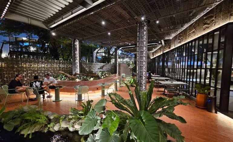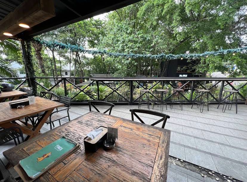 Area semi-outdoor-nya punya nuansa tropis modern, sangat pas buat foto flatlay makanan atau konten aesthetic “me time” di kafe.