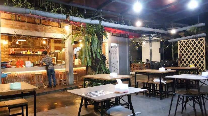Suasana semi-outdoor, desain industrial, dan konsep ruang terbuka menjadikan tempat ini terasa luas dan asri.