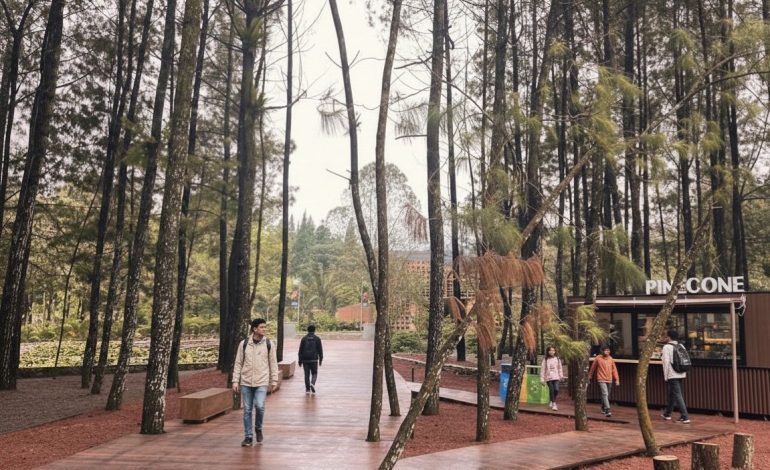 Begitu melewati gerbang, mereka disambut arom pinus yang memanjat udara dengan lembut. Jalan setapak menuju area utama dihiasi lampu gantung kecil yang meredup perlahan karena matahari mulai naik. Sesekali suara hewan terdengar dari kejauhan, menambah kesan bahwa tempat ini hidup dengan ritmenya sendiri.