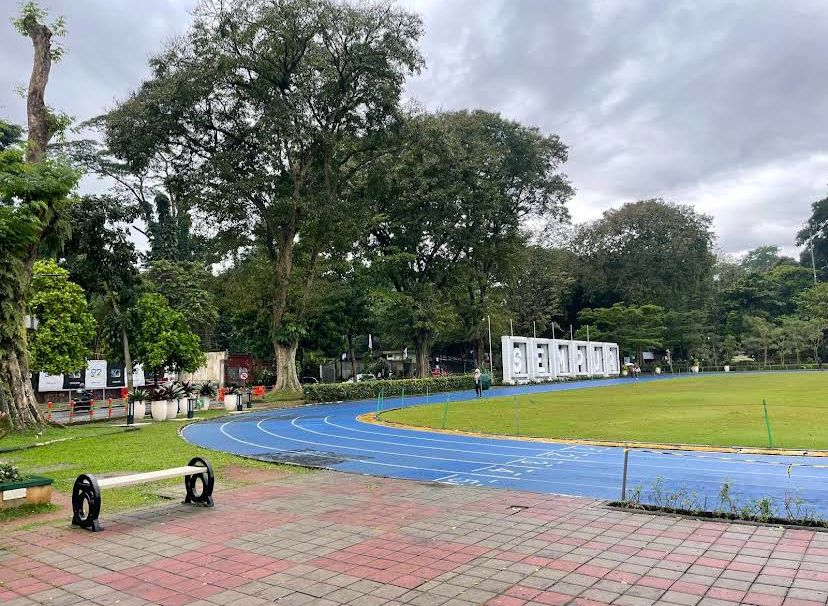 Menjelang pukul lima sore, suasananya berubah drastis. Jogging track yang biasanya dipenuhi pelari kini diramaikan keluarga, komunitas, hingga remaja yang duduk berkelompok. Penjual es buah, kolak, dan cireng memenuhi sisi jalan.